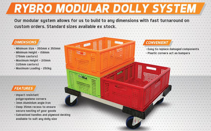 Aluminium profiles allow for the dolly to be customised to hold any size crate or box.